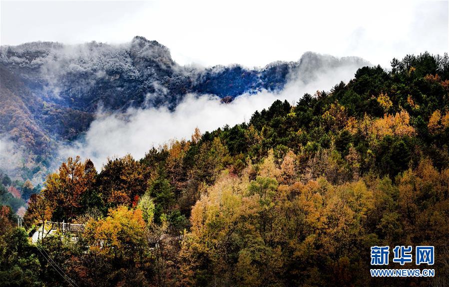 11月5日無(wú)人機(jī)拍攝的陜西省漢中市佛坪縣城旁的秦嶺景色。 新華社記者陶明攝