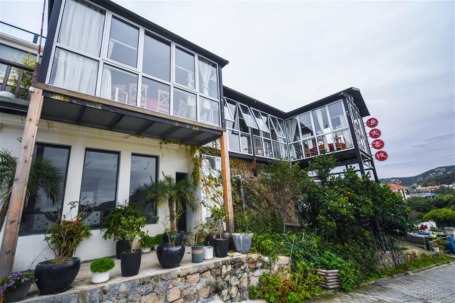 12月16日,“迷嶼海”民宿女主人張馨予在民宿大堂忙碌。該民宿臨海而建,環(huán)境優(yōu)美,吸引很多游客前來休閑住宿。 新華社記者 徐昱 攝