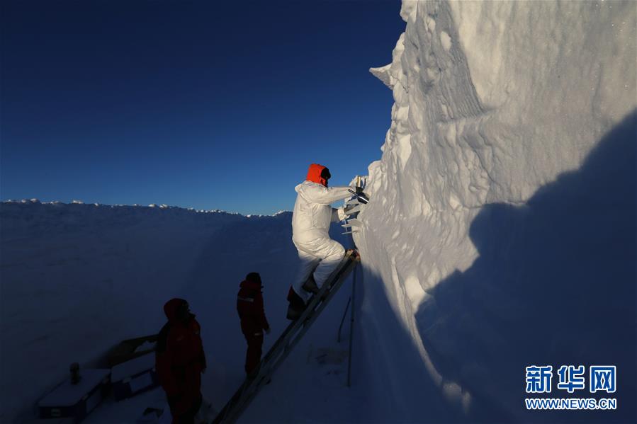 在正處極晝的南極,中國(guó)第35次南極科考隊(duì)“夜以繼日”,于19日至20日趁著“白夜”完成一次雪坑樣品采集。