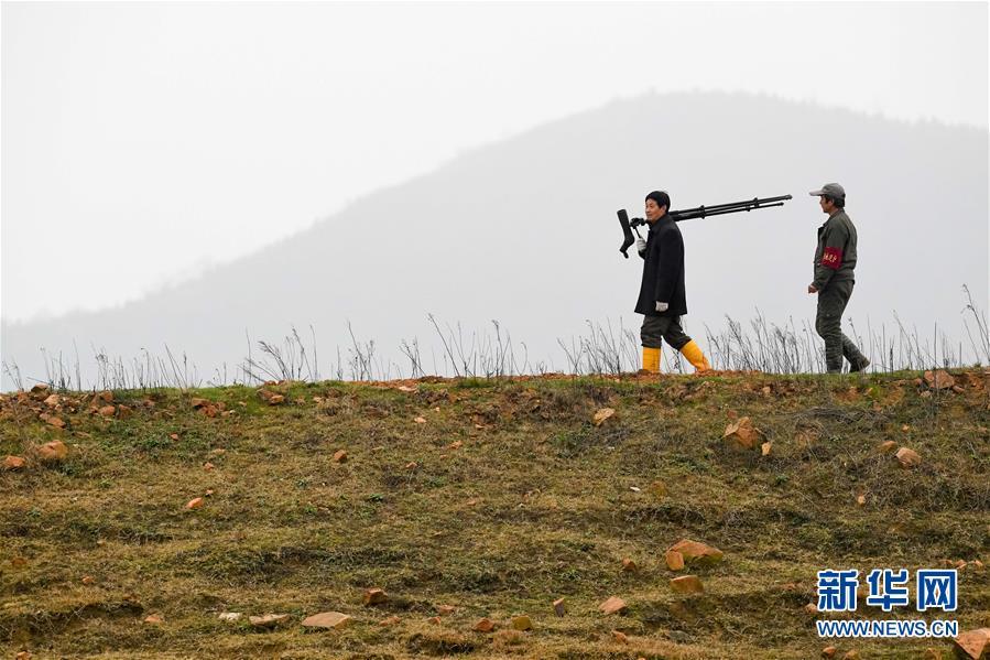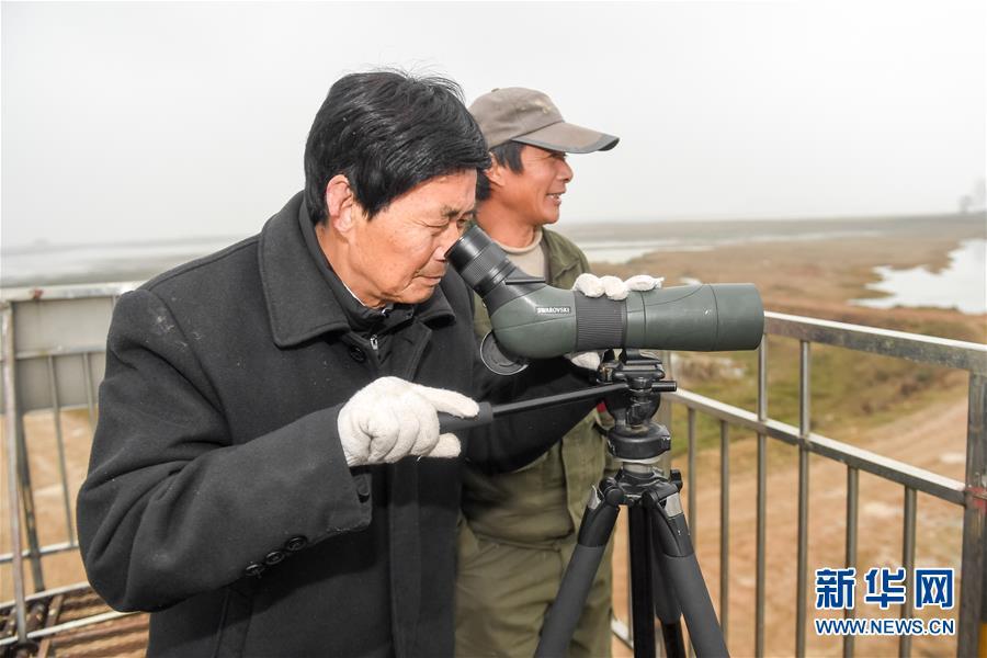 12月22日,王三益(前)在菜子湖濕地觀測候鳥。 新華社記者 張端 攝