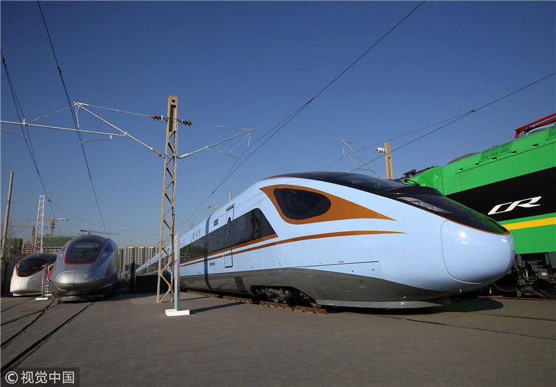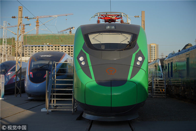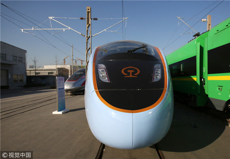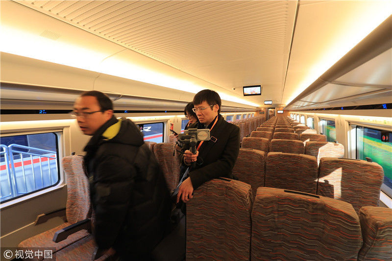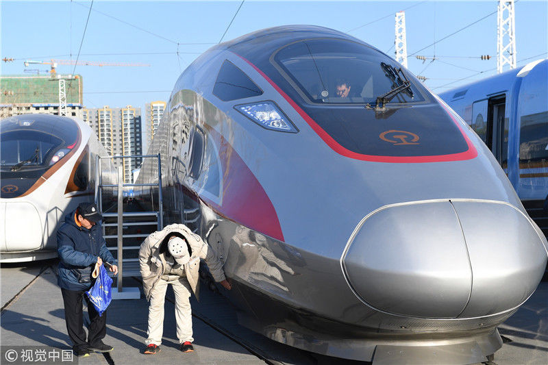 2018年12月24日,北京,中國鐵路科技創(chuàng)新成果展在國家鐵道試驗中心舉行。新型復(fù)興號動車組實(shí)車首次公開亮相,現(xiàn)場體驗乘車運(yùn)行。視覺中國