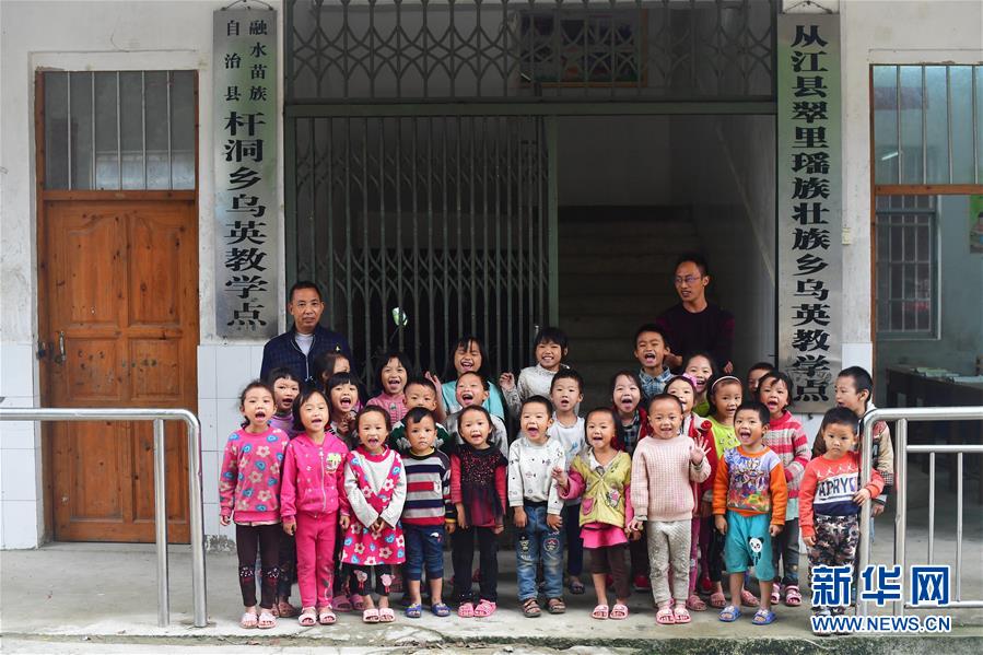 烏英教學(xué)點(diǎn)“一校跨兩省區(qū)”,目前有廣西籍學(xué)生18名,貴州籍學(xué)生9名,廣西貴州籍老師各1名。 烏英苗寨位于黔桂交界的大苗山深處,共有140戶,其中100戶屬廣西柳州市融水苗族自治縣桿洞鄉(xiāng)黨鳩村,40戶屬貴州省從江縣翠里瑤族壯族鄉(xiāng)南岑村。由于地處偏遠(yuǎn),山多地少,經(jīng)濟(jì)發(fā)展緩慢,目前整個(gè)苗寨還有76戶是貧困戶。 面對艱巨的脫貧任務(wù),當(dāng)?shù)攸h委政府在努力改善烏英苗寨公共基礎(chǔ)設(shè)施的同時(shí),因地制宜,帶動(dòng)群眾積極發(fā)展特色產(chǎn)業(yè)。從2017年11月至今的一年多時(shí)間,這里發(fā)生了很大改變:10戶村民新建了木樓,120多戶完成“三改”(改廁改廚改圈),1名貧困考生考上大學(xué),1戶購買新汽車,4對新人舉行了婚禮,寬帶網(wǎng)絡(luò)開始進(jìn)入貧困戶家庭,苗寨修建了新的辦公大樓和戲臺,安裝了4盞太陽能路燈,購買了40多個(gè)新蘆笙,水果種植專業(yè)合作社2018年種植的百香果也開始有所收獲,18戶貧困戶進(jìn)入脫貧公示階段…… 烏英苗寨600多名黔桂苗族群眾,正在用勤勞的手,拔窮根摘窮帽,一起創(chuàng)造美好的明天。