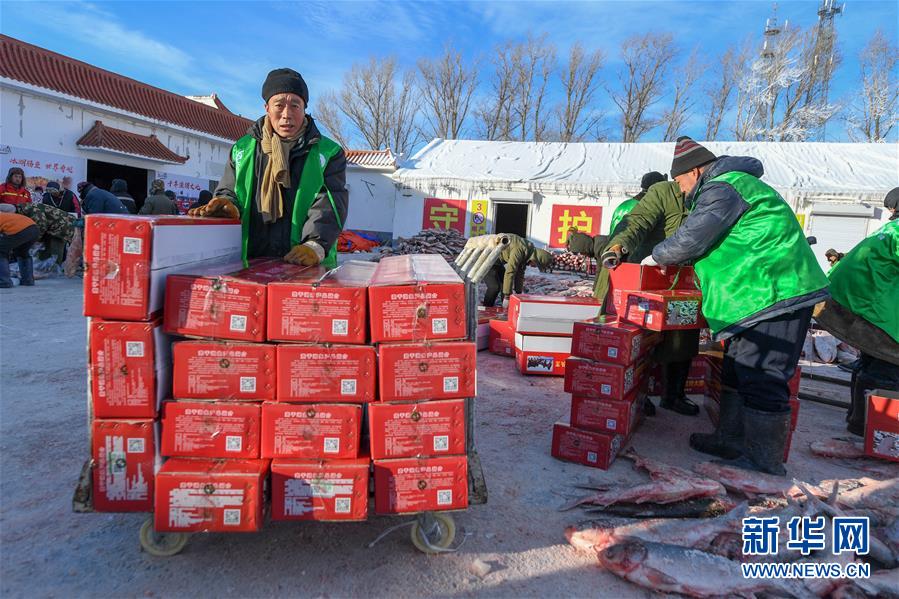 12月27日,在吉林松原查干湖漁場(chǎng),工人們將魚(yú)裝箱。 隨著吉林松原查干湖冬捕知名度不斷提高,全國(guó)各地消費(fèi)者對(duì)查干湖魚(yú)的需求量逐年增大。2014年開(kāi)始,多個(gè)電商平臺(tái)和快遞企業(yè)紛紛抓住商機(jī)進(jìn)駐查干湖。經(jīng)過(guò)多年發(fā)展,借助互聯(lián)網(wǎng)銷售優(yōu)勢(shì)和日趨完善的快遞網(wǎng)絡(luò),全國(guó)多地的百姓可以在魚(yú)出水后的48小時(shí)內(nèi)品嘗到查干湖魚(yú)的鮮美滋味。 新華社記者張楠攝