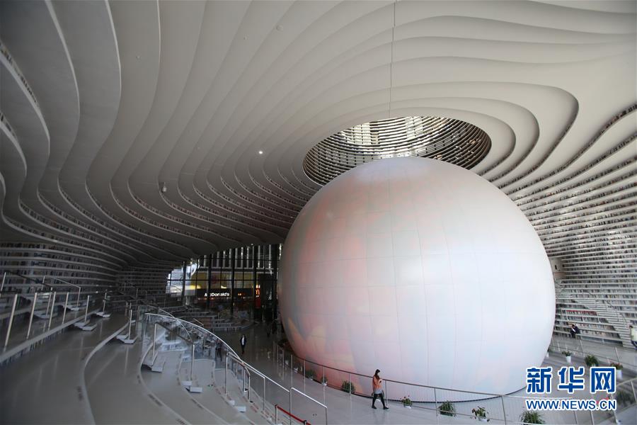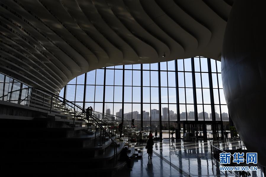 這是12月27日拍攝的天津?yàn)I海新區(qū)圖書館中庭。 濱海新區(qū)圖書館位于天津?yàn)I海文化中心,2017年10月1日正式開(kāi)館,設(shè)計(jì)立意為“濱海之眼”和“書山有路勤為徑”。圖書館現(xiàn)有藏書60多萬(wàn)冊(cè),一年多來(lái)接待讀者約280萬(wàn)人次,已成為濱海新區(qū)的文化“新地標(biāo)”。 新華社記者安希雅攝