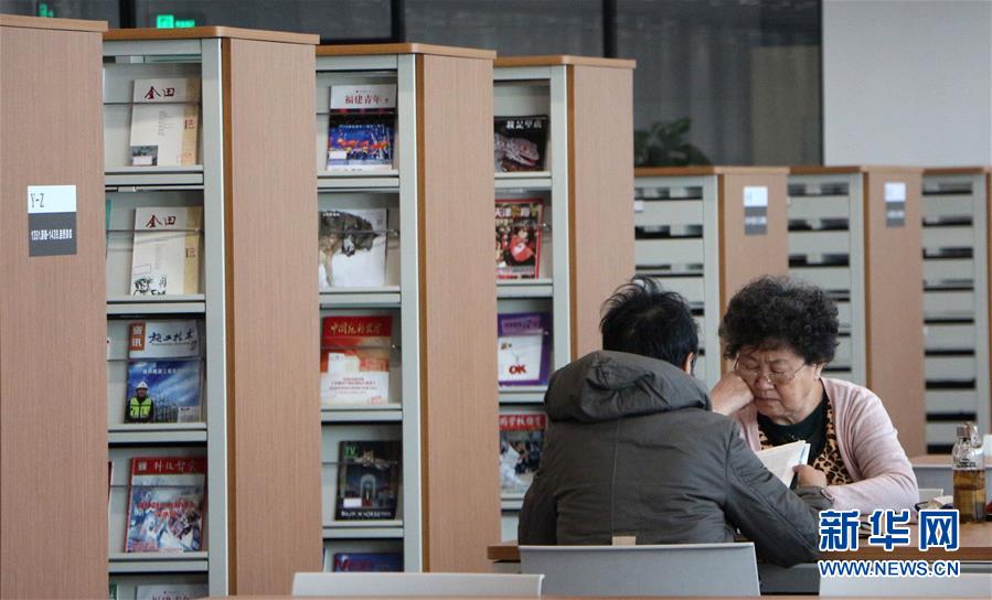 12月27日,在天津?yàn)I海新區(qū)圖書館,工作人員(左)在閱覽室中擺放圖書。 濱海新區(qū)圖書館位于天津?yàn)I海文化中心,2017年10月1日正式開(kāi)館,設(shè)計(jì)立意為“濱海之眼”和“書山有路勤為徑”。圖書館現(xiàn)有藏書60多萬(wàn)冊(cè),一年多來(lái)接待讀者約280萬(wàn)人次,已成為濱海新區(qū)的文化“新地標(biāo)”。 新華社記者伍婧丹攝