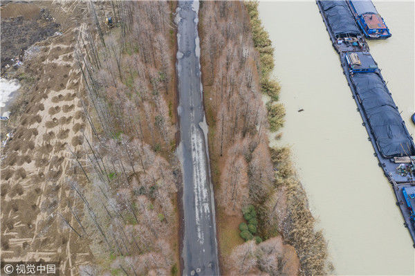 2018年12月27日,江蘇淮安,航拍京杭大運(yùn)河淮安段冬日景色。