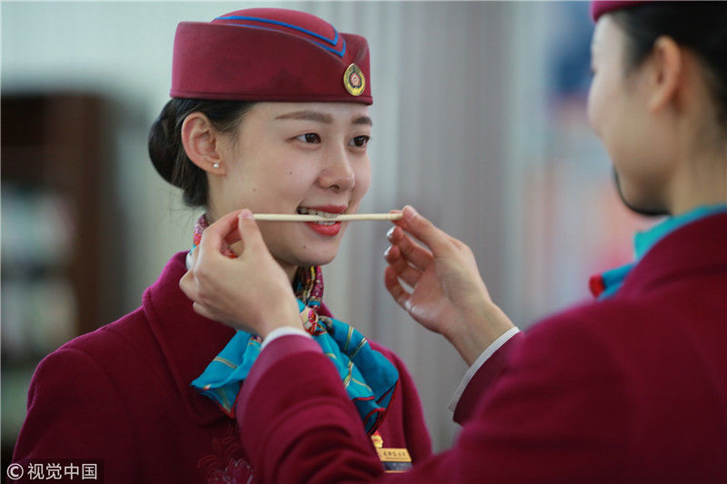 成都“動(dòng)姐”叼筷子練微笑 禮儀培訓(xùn)備戰(zhàn)成雅鐵路