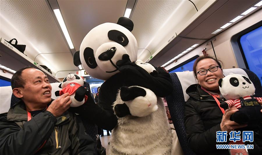 12月28日,在成都西至雅安的C6651次列車上,“熊貓”與旅客們互動(dòng)。