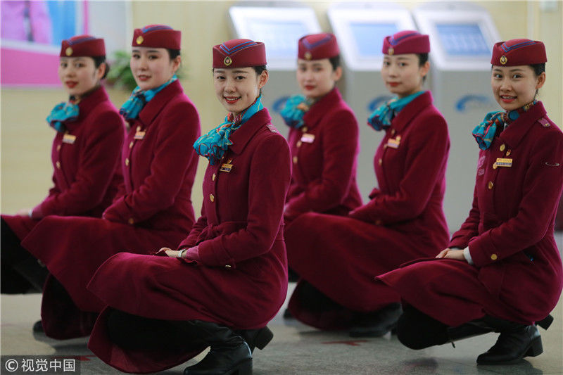 2018年12月27日,四川成都,為備戰(zhàn)即將開通的成雅鐵路,中國鐵路成都局集團有限公司成都客運段動車二隊對成雅動車的乘務(wù)人員進行理論、形體、服務(wù)禮儀等內(nèi)容的培訓(xùn)。