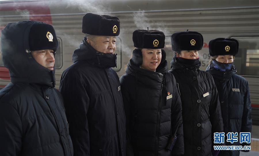 1月11日,在滿洲里火車站站臺,“金鑰匙”服務(wù)臺客運員在嚴(yán)寒中等待列車進(jìn)站。
