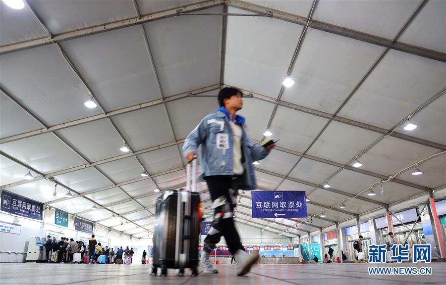 1月15日,一名旅客在廣州火車站售票大廳外臨時(shí)搭建的互聯(lián)網(wǎng)購票取票大棚內(nèi)取票。 為適應(yīng)互聯(lián)網(wǎng)購票旅客比重持續(xù)上升趨勢(shì),廣州火車站在籌備2019年春運(yùn)票務(wù)業(yè)務(wù)時(shí),優(yōu)化互聯(lián)網(wǎng)購票取票和退改簽業(yè)務(wù)辦理流程設(shè)計(jì),提升效率,方便旅客出行。 新華社記者劉大偉攝