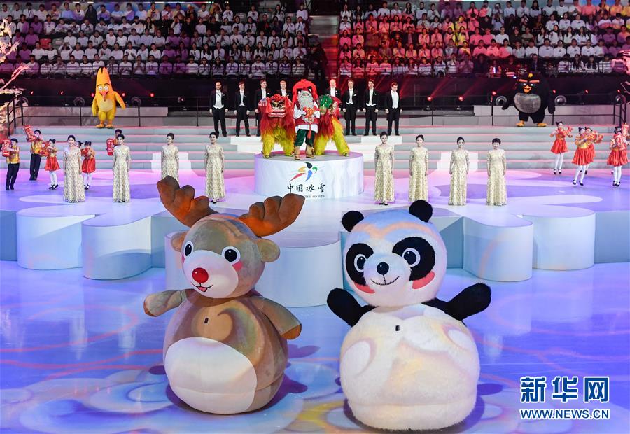 1月15日,演員在開幕式上表演。 當日,“2019中芬冬季運動年”開幕式在北京首鋼冰球館舉行。 新華社記者申宏攝