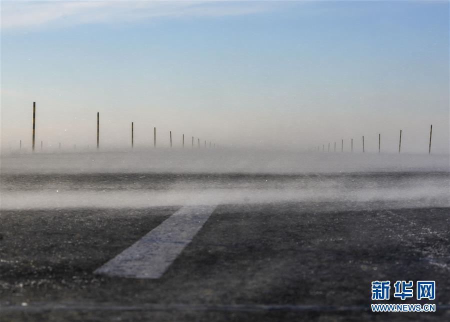 1月15日,在新疆瑪依塔斯風區(qū)內(nèi),大風將白雪吹到公路上。 瑪依塔斯風區(qū)位于新疆西北部額敏縣境內(nèi)。這里東西風交替頻繁,一年大風天數(shù)超過150天,是世界上罕見的暴風雪災害地段。駐守在這里的新疆塔城公路管理局額敏分局瑪依塔斯應急保障基地,近年來連續(xù)裝備拋雪機等冰雪搶險救災裝備,有力地保障了這條道路的交通安全。 新華社記者趙戈攝