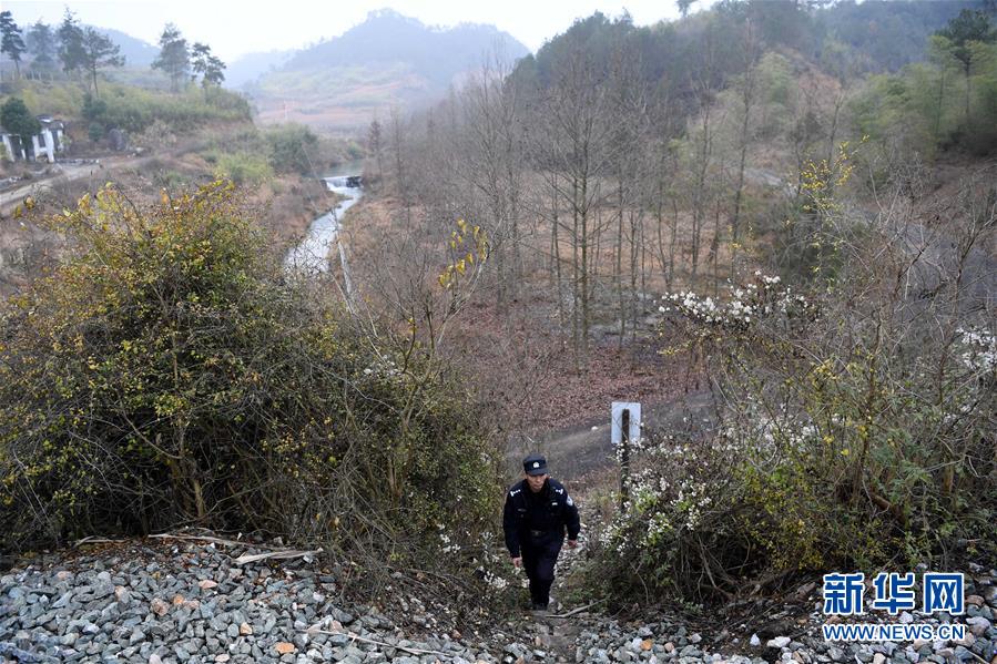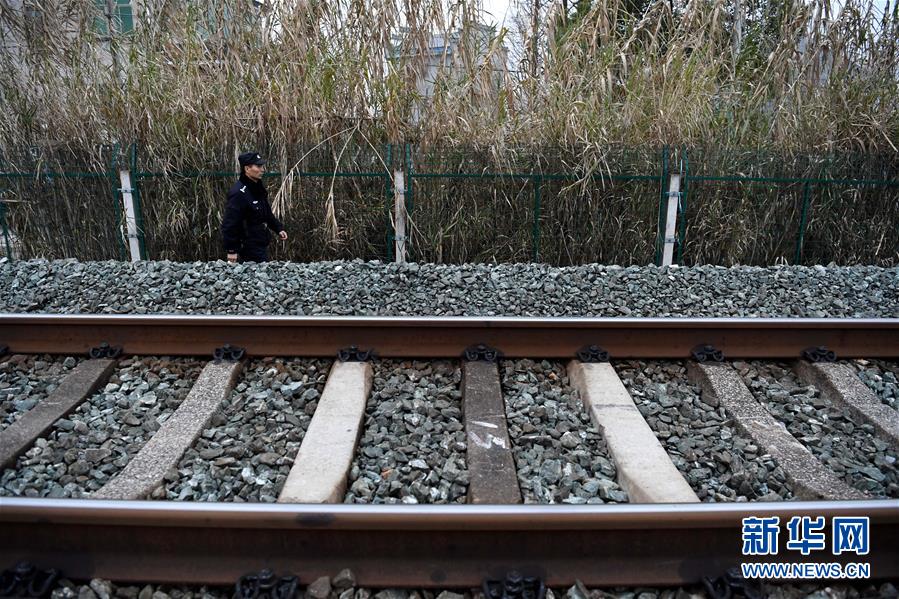 1月16日,汪茂才一早搭乘鐵路通勤車前往十公里外的三昆站,然后往回徒步巡查鐵路線。 今年52歲的汪茂才是合肥鐵路公安處黃山站派出所歙縣警務(wù)室的一名線路民警,他所在的警務(wù)室負責(zé)皖南山區(qū)皖贛鐵路線約80公里范圍內(nèi)的線路安全。從警30年來,線路巡查、鐵路安全知識宣傳等是汪茂才的日常工作。多年來的徒步巡線,讓汪茂才練就了一雙快腿,十公里的路,汪茂才兩個小時就能走完。 汪茂才負責(zé)的鐵路沿線周邊村莊較多,很多房子都是沿鐵路線而建,有些村民為了圖方便,違規(guī)穿越鐵路線。加強對鐵路沿線居民的安全宣傳教育,成為汪茂才的一項重要工作,沿線村民的安全意識也越來越高。 對汪茂才這樣的線路民警來說,大多數(shù)時候都是“獨行俠”,“當線路民警就要耐得住寂寞,守得住孤獨,與大山為伴,與線路為友,盡己所能,為鐵路安全運行保駕護航?!蓖裘耪f。 新華社記者劉軍喜攝