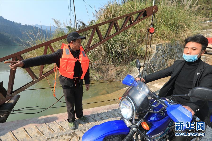 1月22日,何銀祥在渡船上指揮乘客上船。 新華社記者 歐東衢 攝