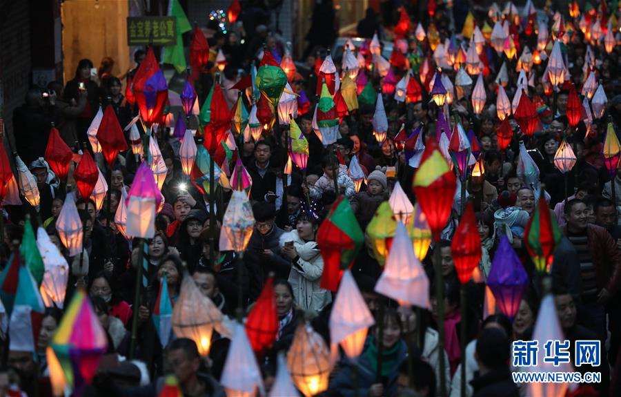 2月18日,在四川省南充市嘉陵區(qū)金寶鎮(zhèn),群眾舉著“蠐蟆燈”巡游。 當日是農(nóng)歷正月十四,夜幕降臨后,川渝等地數(shù)萬名群眾在四川省南充市嘉陵區(qū)金寶鎮(zhèn)匯聚,點亮“蠐蟆燈”,敲著鑼鼓唱著歌謠,將“蠐蟆”送到幾公里外的田邊或者河邊燒掉,祈福健康平安。星星點點的燈光在鄉(xiāng)間小路閃爍移動,場面壯觀熱烈。 “送蠐蟆”祈福這一習(xí)俗源于清朝,歷經(jīng)演變成為川東北地區(qū)一個古老而神秘的地方民俗節(jié)日。 新華社記者 江宏景 攝