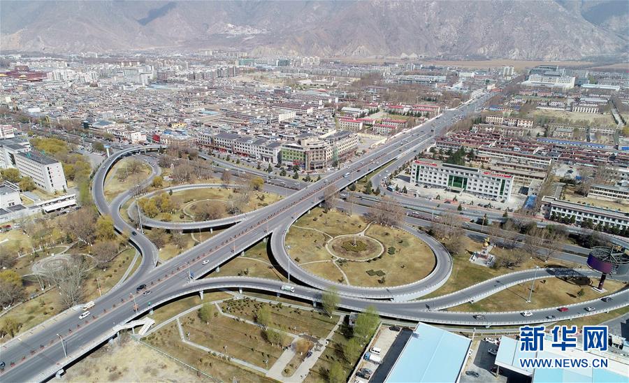這是建在拉薩市西郊的立交橋(4月3日無(wú)人機(jī)拍攝)。 新華社記者 晉美多吉 攝
