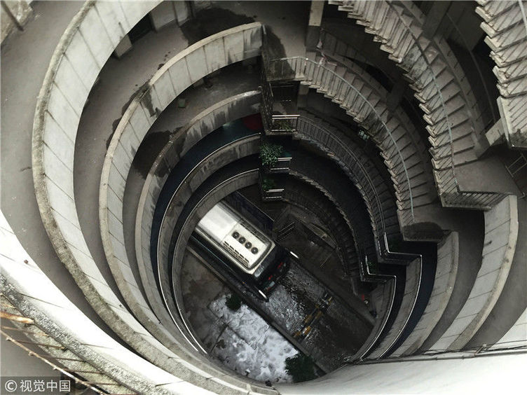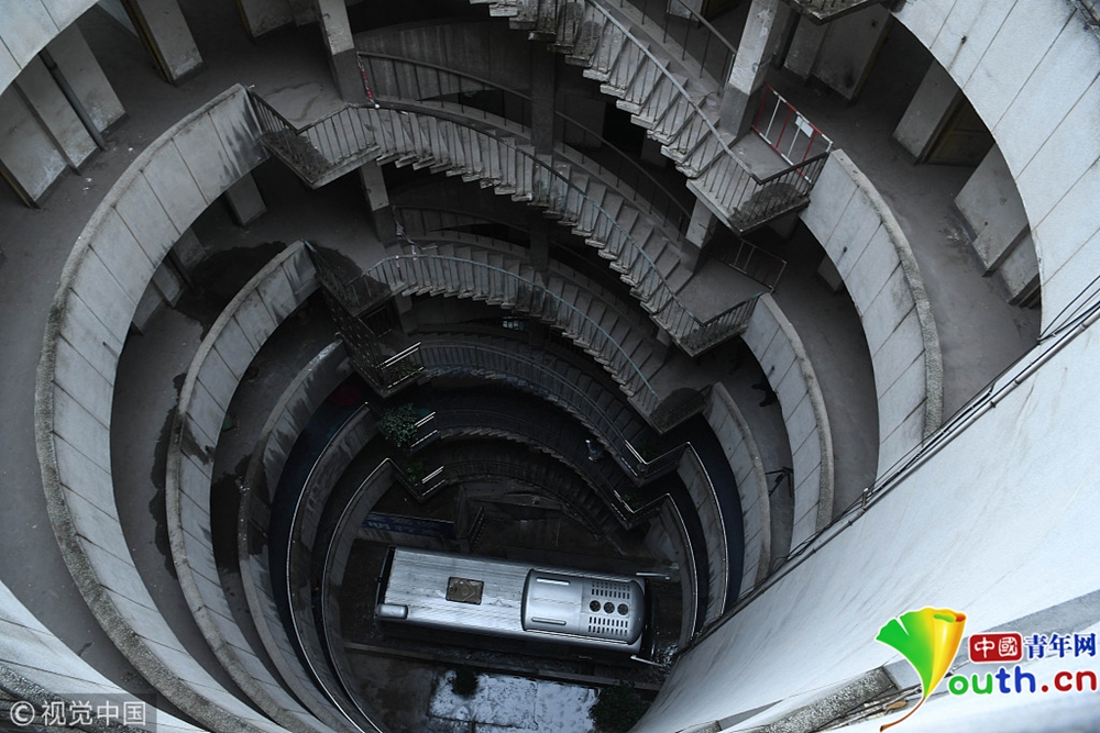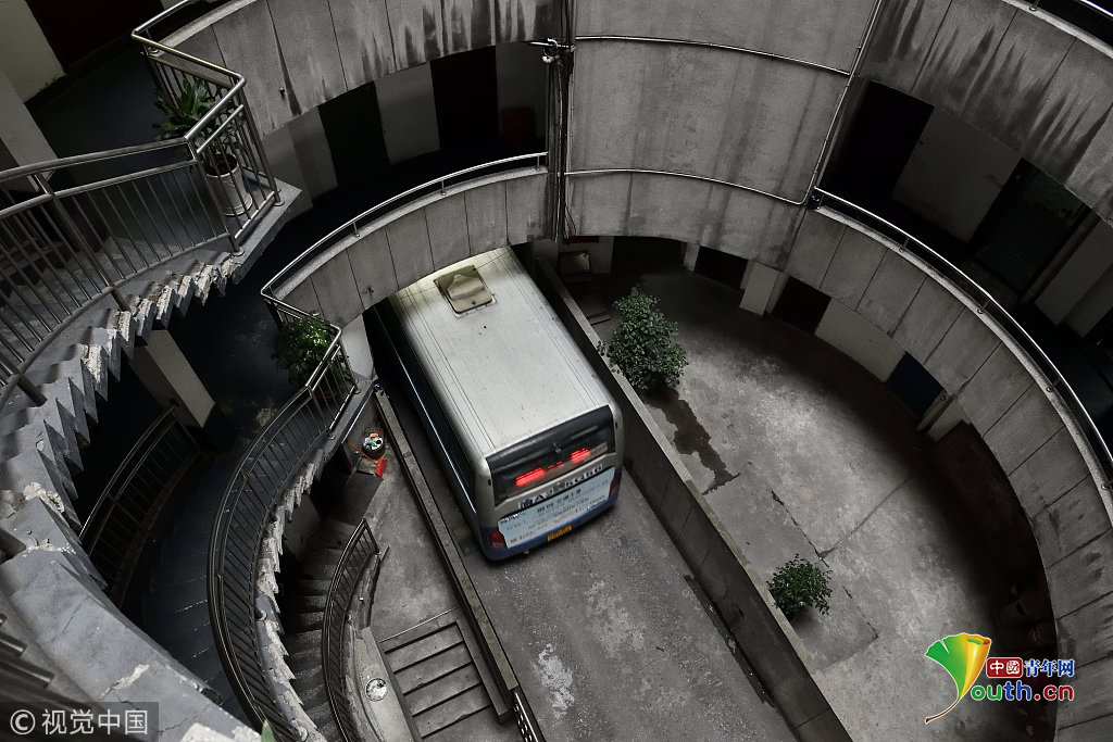 探秘重慶魔幻八層圓筒型轉(zhuǎn)轉(zhuǎn)樓 公交車(chē)穿其而過(guò)