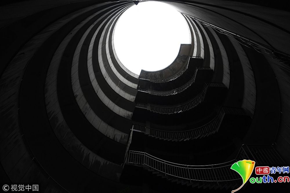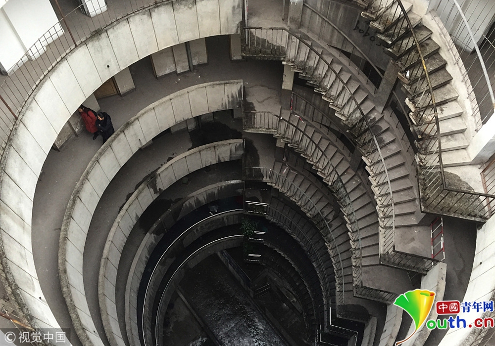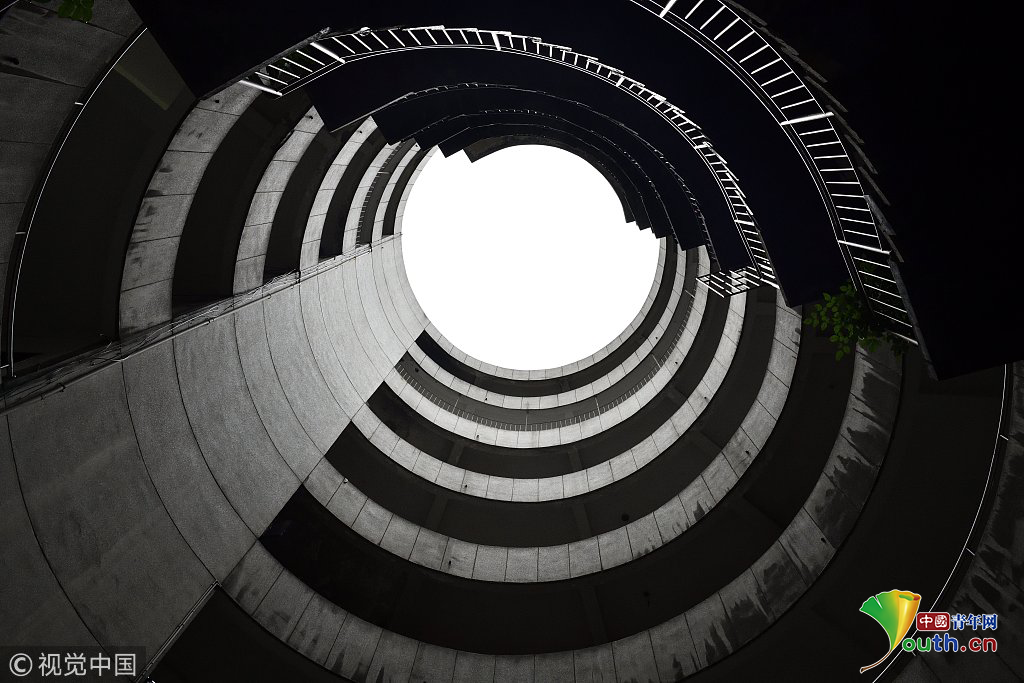 2018年12月11日,重慶紅旗河溝汽車(chē)站辦公大樓。八層的圓筒型轉(zhuǎn)轉(zhuǎn)樓,站在樓里往上望,可以看見(jiàn)碗口大的天空。圖片作者:尋常