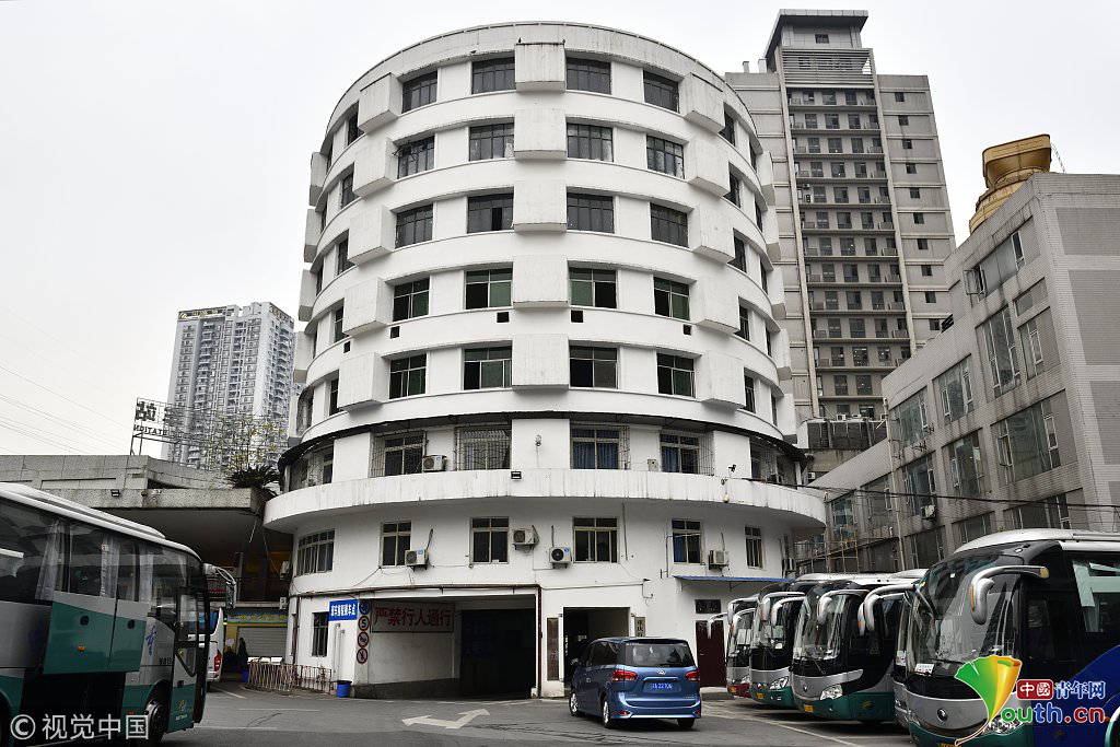 2018年12月6日,重慶江北紅旗河溝汽車(chē)站內(nèi),有一棟獨(dú)特的八層圓環(huán)狀建筑,底層每天有不少進(jìn)出站的客車(chē)通行。