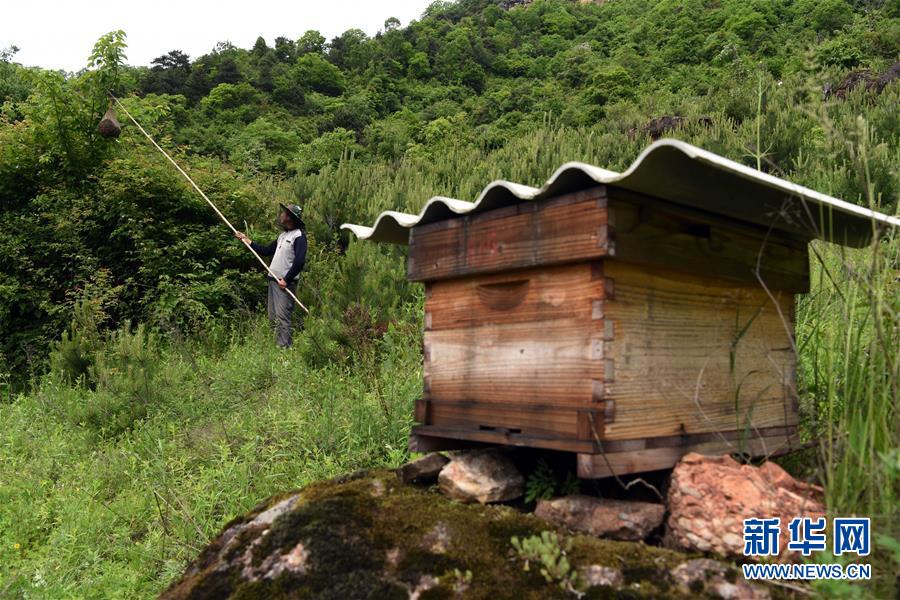 5月10日,在甘肅省隴南市徽縣大河店鎮(zhèn)硬灣村,蜂農(nóng)周仲頤在收蜂。 甘肅省隴南市徽縣大河店鎮(zhèn)硬灣村位于秦巴山區(qū)深處,2017年,在當(dāng)?shù)卣姆龀窒?,龍崖老巢蜜養(yǎng)殖農(nóng)民專(zhuān)業(yè)合作社成立,蜂農(nóng)們將傳統(tǒng)養(yǎng)蜂技藝和現(xiàn)代加工方式相結(jié)合,并通過(guò)電商等渠道打開(kāi)銷(xiāo)路,有效帶動(dòng)了當(dāng)?shù)刎毨Т迕衩撠氈赂?。目前整個(gè)合作社共有蜂箱2000余個(gè),每箱每年可帶來(lái)三四千元的收入。 新華社記者 馬寧 攝