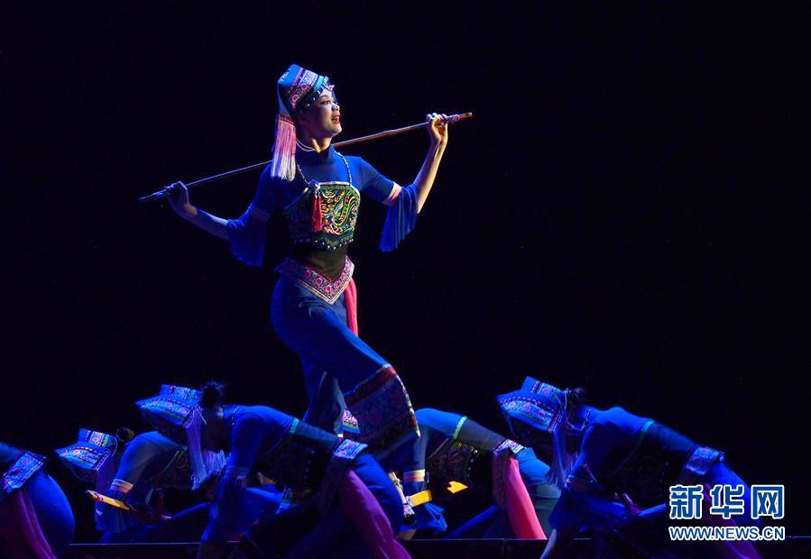 5月16日,在第十八屆群星獎決賽舞蹈類作品比賽中,演員在表演《苗家阿婆笑哈哈》。 當日,作為第十二屆中國藝術節(jié)的重要內容,第十八屆群星獎決賽在上海東方藝術中心啟動。84個入圍決賽作品將按照舞蹈、音樂、戲劇、曲藝4個門類進行7場比賽,最終評出20個獲獎作品。 新華社記者 任瓏 攝