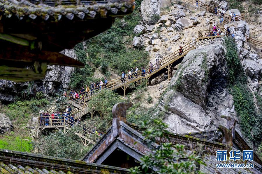 游客在天生三橋景區(qū)游覽(3月27日攝)。新華社記者劉潺攝