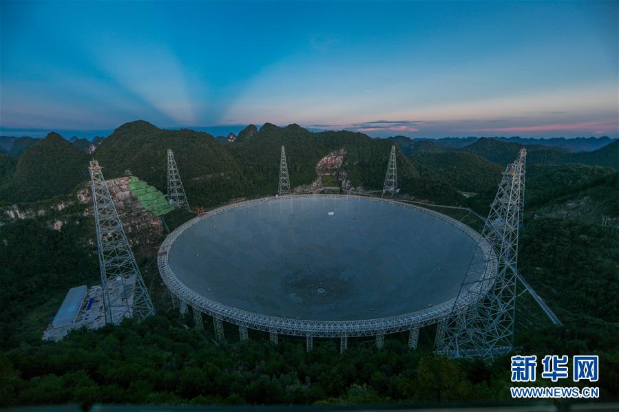 8月27日拍攝的落日余暉中的“中國天眼”。 新華社記者 歐東衢 攝