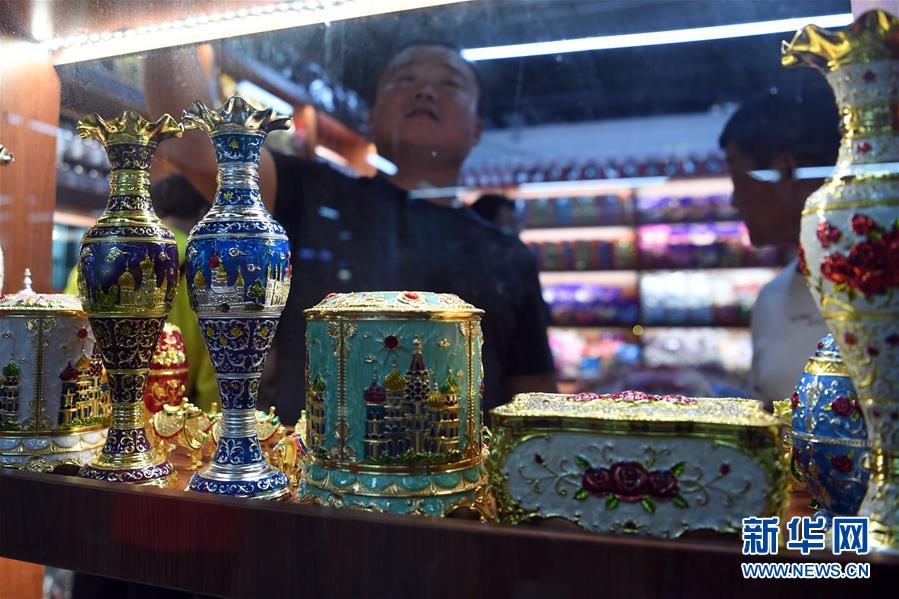 9月4日,在新疆塔城地區(qū)巴克圖口岸,顧客在絲路文化商品城內(nèi)選購商品。 新華社記者鄒予攝