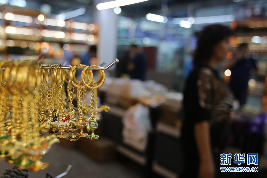 9月4日,在新疆塔城地區(qū)巴克圖口岸,顧客在絲路文化商品城內(nèi)選購商品。 新華社記者沙達(dá)提攝