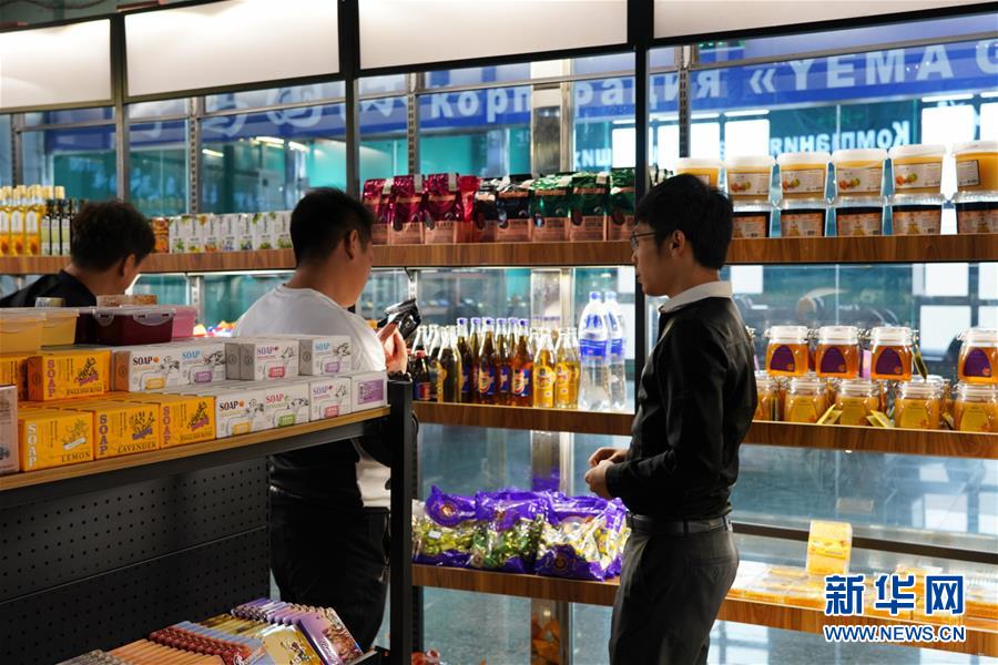 這是9月4日在新疆塔城地區(qū)巴克圖口岸的絲路文化商品城內(nèi)拍攝的進(jìn)口產(chǎn)品。 新華社記者沙達(dá)提攝