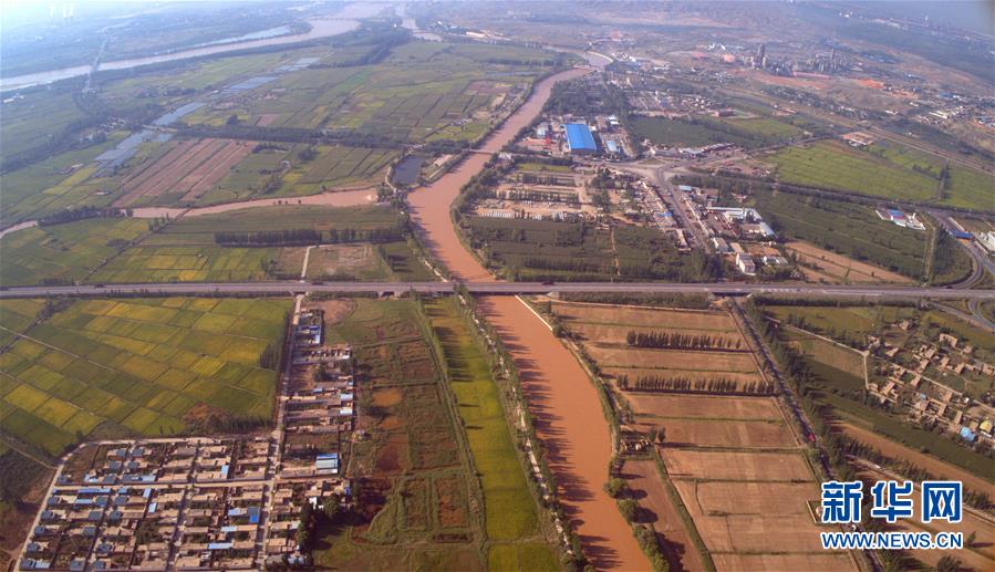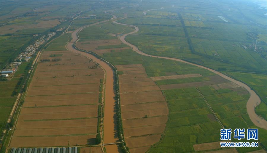 青銅峽市境內(nèi)的黃河(9月3日無人機拍攝)。新華社記者劉詩平攝