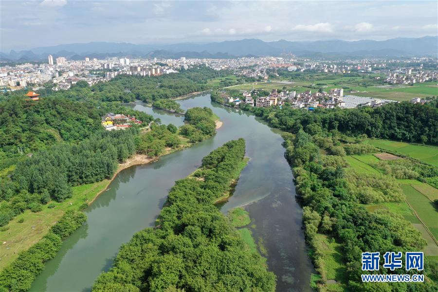 這是6月30日無人機拍攝的廣西興安縣靈渠。 位于廣西興安縣的靈渠是世界上保存最完整的古代水利工程之一,至今仍發(fā)揮著農(nóng)田灌溉、排洪泄洪作用。2018年,靈渠入選世界灌溉工程遺產(chǎn)名錄。 新華社記者 周華 攝