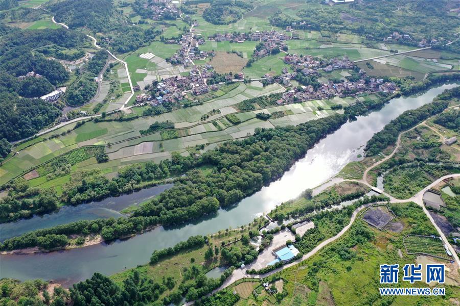 這是槎灘陂水利灌溉工程一景(5月29日無人機拍攝)。新華社記者彭昭之攝