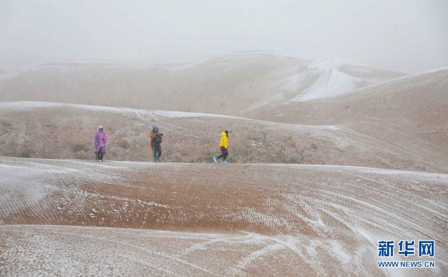 10月15日,游客在寧夏中衛(wèi)市沙坡頭景區(qū)欣賞沙漠雪景。深秋時節(jié),位于騰格里沙漠邊緣的寧夏中衛(wèi)市沙坡頭景區(qū)迎來一場降雪。漫漫黃沙被覆蓋在皚皚白雪之下,呈現出一種別樣的美。新華網杜文杰攝