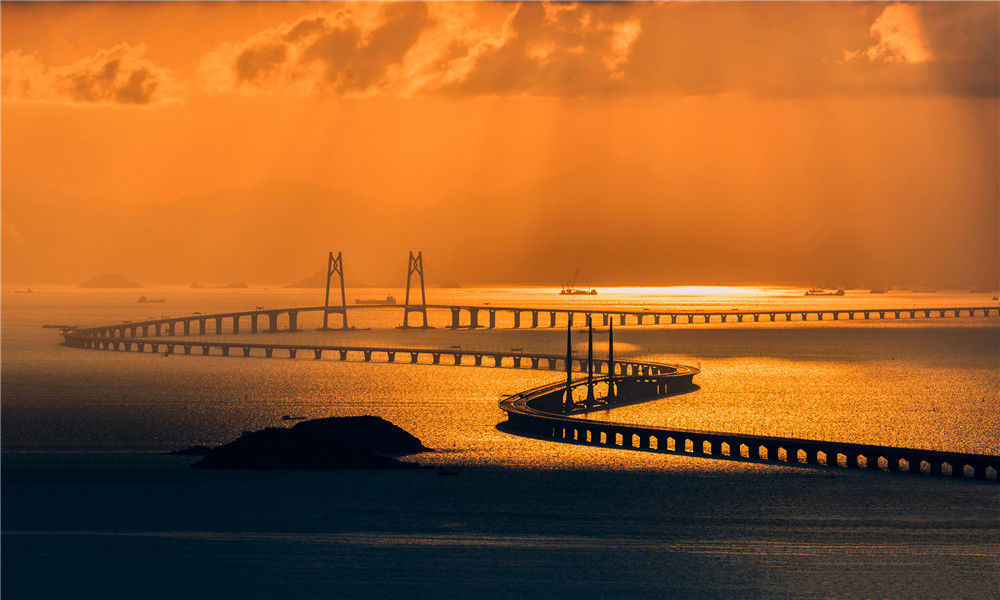 2018年10月22日早晨,從廣東珠海市的情侶路向東眺望,一輪紅日從東方冉冉升起,將港珠澳大橋映射得格外迷人。“超級工程”港珠澳大橋?qū)⒂?4日上午9時正式通車。張煒(香港分社)/中新社/視覺中國