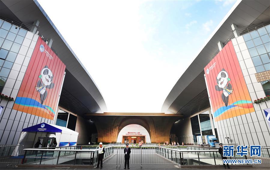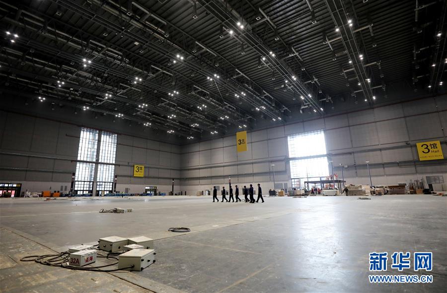 這是10月25日拍攝的正在進(jìn)行裝飾施工的國家會(huì)展中心(上海)南廣場(chǎng)。 新華社記者 方喆攝