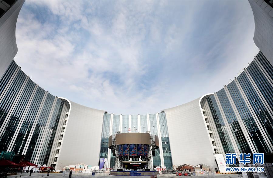 這是10月25日拍攝的位于國展中心中央廣場的進博會中央舞臺(中下)。 新華社記者 方喆攝
