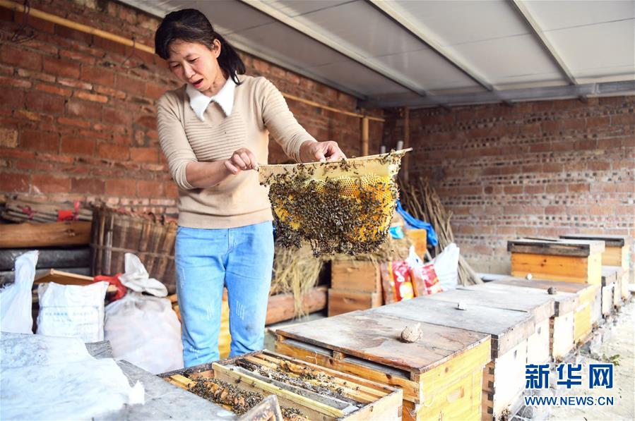 這是葉德華在查看蜂蜜成色,準(zhǔn)備送檢(11月12日攝)。 葉德華是廣西陽朔縣楊堤鄉(xiāng)楊堤村村民,一家人的生計(jì)由她一人撐起,母親年邁,兒子年幼,家庭經(jīng)濟(jì)困難。 2017年起,葉德華在當(dāng)?shù)胤鲐毟刹亢宛B(yǎng)蜂協(xié)會的幫扶下開始發(fā)展蜜蜂特色養(yǎng)殖,從養(yǎng)殖8箱蜜蜂起步走上養(yǎng)蜂脫貧致富路。目前她的蜂蜜產(chǎn)品遠(yuǎn)銷上海、深圳、湖南等地,年收入近10萬元,不僅脫貧摘帽,還建起了兩層小樓。 目前,葉德華在努力學(xué)習(xí)電商銷售的同時(shí),還積極向貧困戶傳授養(yǎng)蜂技能,爭取幫助更多人走上脫貧致富路。 新華社記者張愛林?jǐn)z