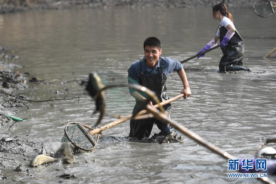 11月24日,游客在西溪濕地體驗(yàn)“干塘”捕魚(yú)。近日在杭州西溪國(guó)家濕地公園,漁夫們抽掉塘水清理淤泥,一批游客借用漁夫們的下水褲,體驗(yàn)“干塘”捕魚(yú)?!案商痢笔呛贾菸飨粠Т迕竦膫鹘y(tǒng)生產(chǎn)習(xí)俗,漁戶(hù)在冬季將魚(yú)塘內(nèi)的水抽掉,清挖淤泥,以便第二年可以更好地養(yǎng)魚(yú)。新華社記者黃宗治攝
