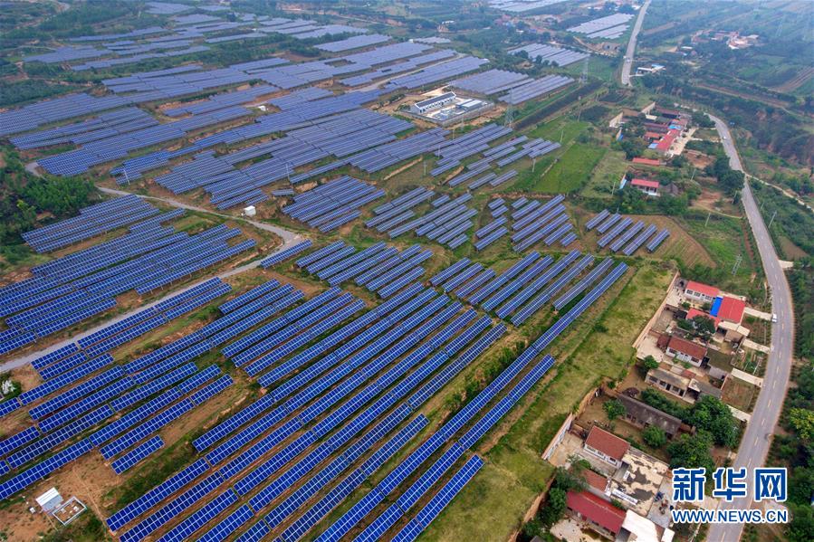 這是7月5日拍攝的山西省運城市芮城縣光伏領(lǐng)跑技術(shù)基地(無人機拍攝)。 新華社記者曹陽攝
