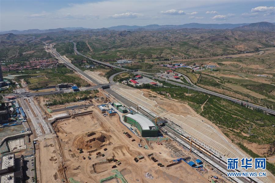 建設(shè)中的京張高鐵下花園北站(5月29日無(wú)人機(jī)拍攝)。新華社記者邢廣利攝