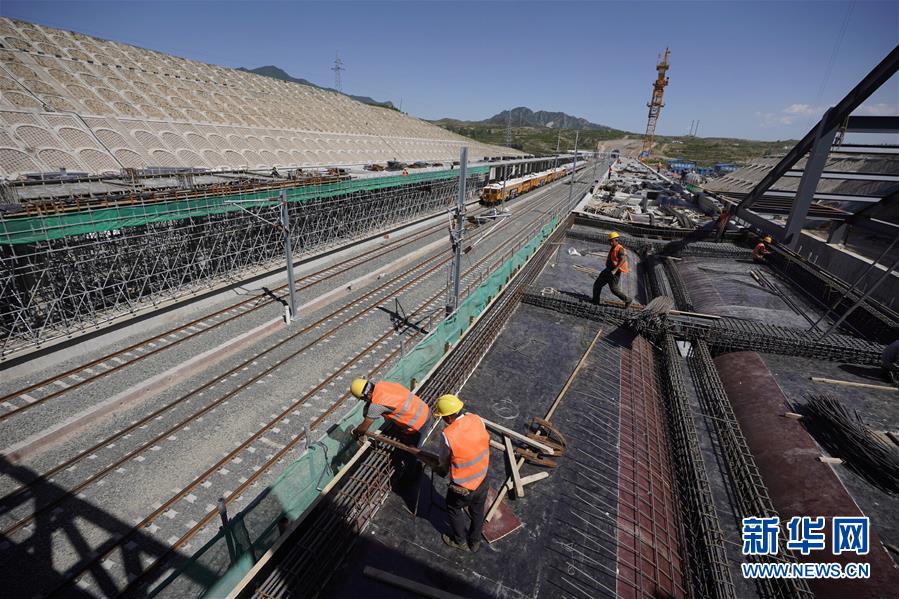 5月29日,工人在京張高鐵下花園北站施工。新華社記者邢廣利攝