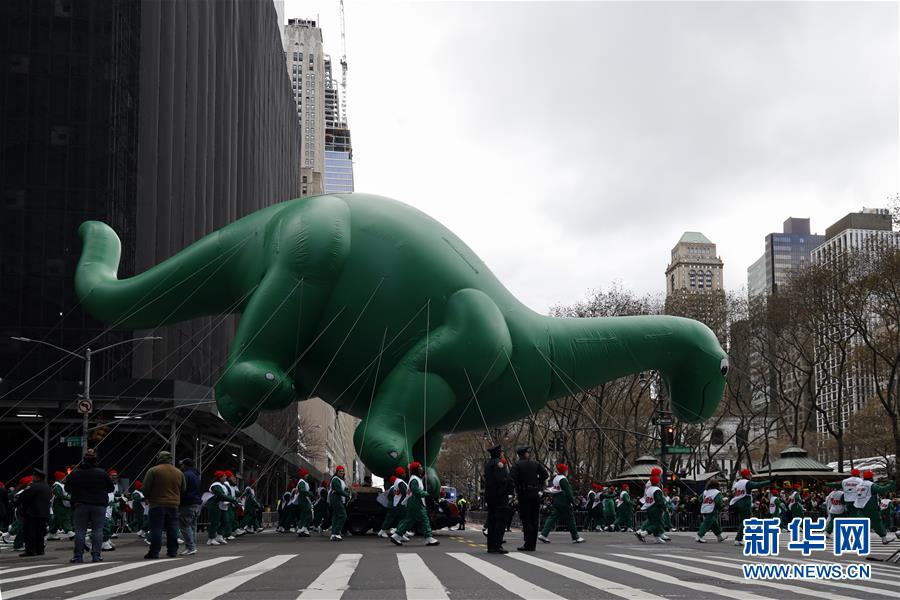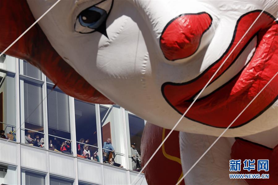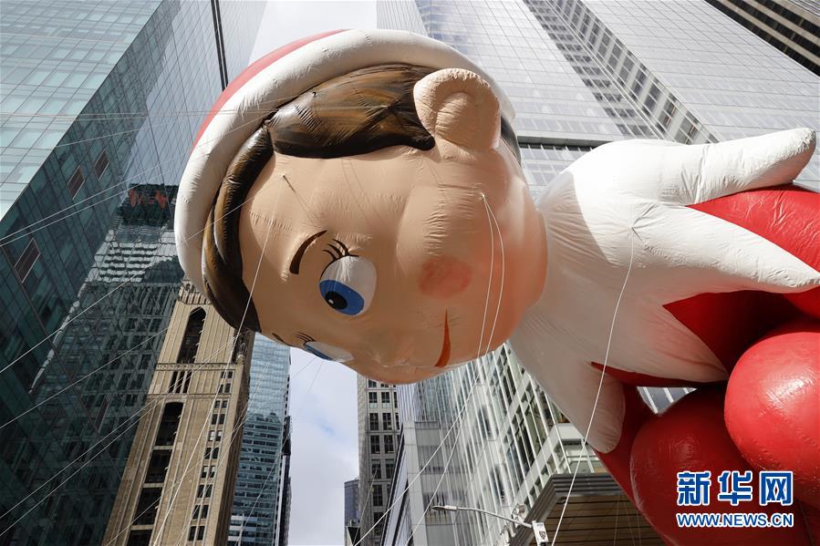 11月28日,在美國(guó)紐約舉行的感恩節(jié)大游行上,卡通氣球行進(jìn)在曼哈頓街頭。 新華社記者 李木子 攝
