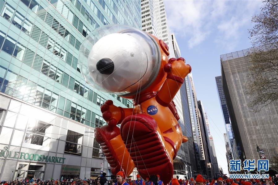 11月28日,在美國(guó)紐約,人們?cè)诖髽巧嫌^看感恩節(jié)大游行。 當(dāng)日,2019梅西感恩節(jié)大游行在紐約舉行,各式各樣的玩偶?xì)馇?、花?chē)隊(duì)伍在曼哈頓的摩天大樓間穿行,吸引數(shù)百萬(wàn)民眾前來(lái)觀看。梅西感恩節(jié)大游行始于1924年,是全美規(guī)模最大的感恩節(jié)游行。 新華社記者 李木子 攝