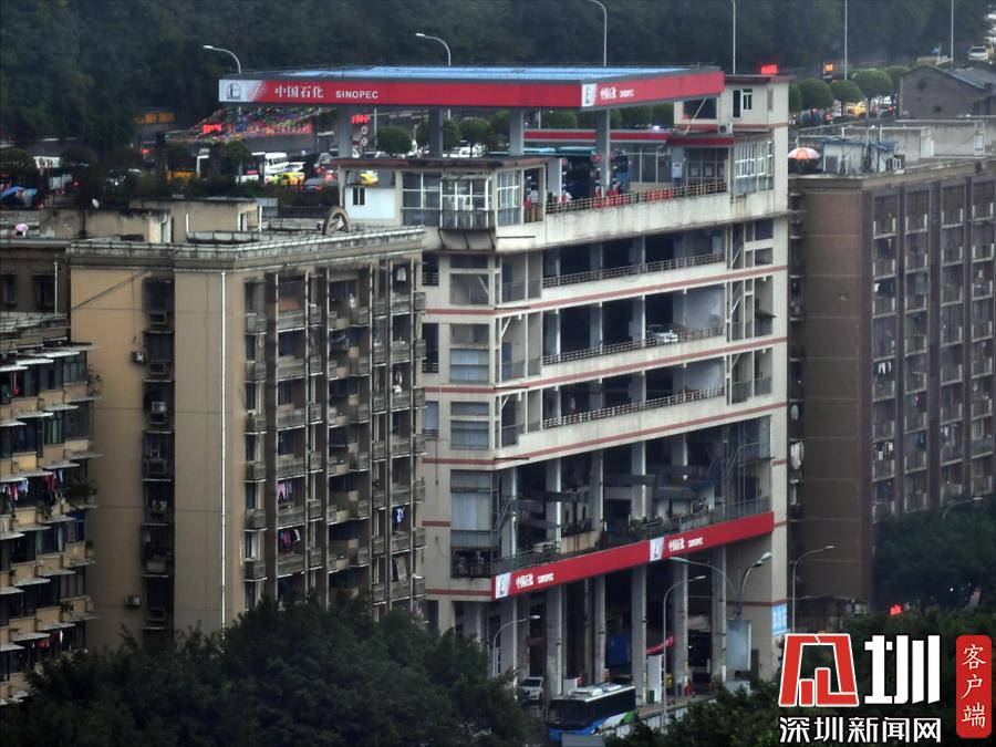2019年11月24日,重慶渝中區(qū),一棟大樓的一樓是加油站,六樓樓頂還是加油站,讓人稱奇。