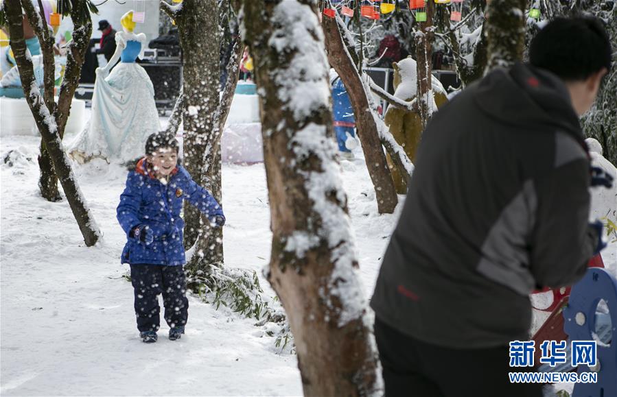 12月28日,小朋友在峨眉山風景名勝區(qū)打雪仗。新華社記者李夢馨攝