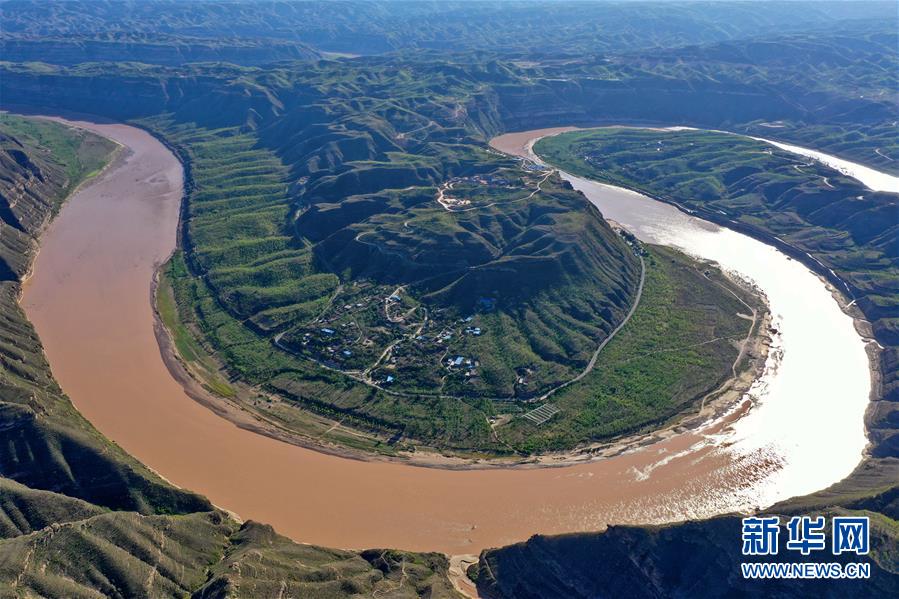 這是8月28日拍攝的山西省永和縣閣底鄉(xiāng)境內(nèi)黃河乾坤灣(無人機(jī)照片)。 新華社記者 曹陽 攝