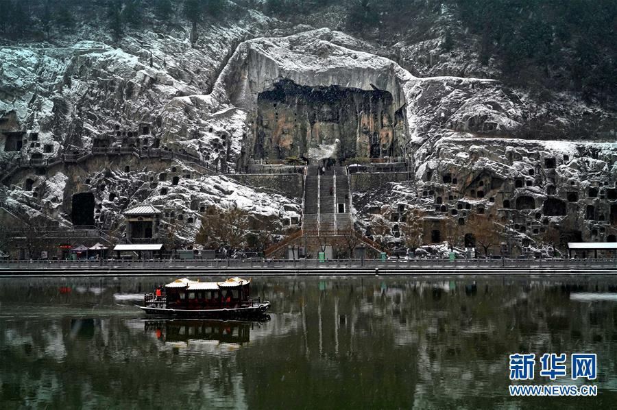 當日,雪后的河南洛陽龍門石窟景區(qū)銀裝素裹,一幅天然的水墨畫卷徐徐展開。