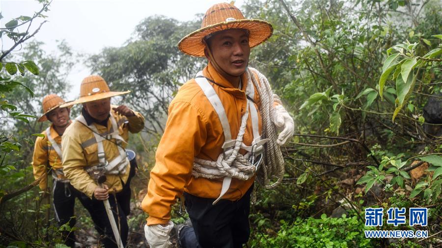 1月14日,百色工務(wù)段白水河橋隧工區(qū)班組成員在搜山掃石。在中國鐵路南寧局集團(tuán)公司百色工務(wù)段白水河橋隧工區(qū),有一個由14名工人組成的班組。他們常年像“爬山虎”一樣行走攀爬在地形險峻、云霧繚繞的高山上,負(fù)責(zé)南昆鐵路轄區(qū)路段的搜山掃石工作,清除一切可能危害鐵路行車安全的因素,保障旅客出行安全。新華社記者張愛林?jǐn)z